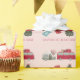 O papel de embrulho de 1rua/primeiro aniversário da garota do tema de acampamento bonito apresenta um fundo rosa com uma carrinha vermelha com um campista de lágrimas/caminhão/trailer, árvore de Natal e presentes. Personalize-o para as suas necessidades. Você pode encontrar produtos correspondentes na minha loja.