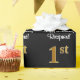 Este luxuoso, na moda, e elegante design de papel embrulhado com temas de aniversário apresenta um grande número ordinal "1ruas" com uma aparência de ouro imitação/falsa, além da mensagem de saudação de aniversário "Happy primeiro aniversario", e um nome de destinatário editável em uma fonte estilo script. Também tem um fundo de cor preta. Um papel de enrolar como este pode ser usado ao embrulhar presentes que estão sendo dados a alguém em comemoração de seu primeiro aniversário. [~Z0000515]