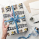 Rosto de sorriso do primeiro aniversario traçado preto, branco e amarelo pincel de relâmpago de ranhura embrulho de aniversário legal.