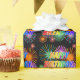 Esta vibrante e divertida design de papel embrulhado com tema de aniversário apresenta a mensagem "FELIZ ANIVERSÁRIO, BRENDAN", tendo um espectro colorido do arco-íris inspirado em um padrão de gradação, e um excitante e comemorativo fogos de artifício inspirados em um padrão de fundo. Um papel de embrulho vibrante como este pode ser usado ao embrulhar presentes que são dados em comemoração do aniversário de alguém chamado Brendan. [~Z0000456]