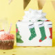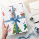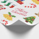 Ícones e decorações de Natal brancos com papel embrulho de Natal Feliz. Este design de presente apresenta Papais noeis, presentes, renas, árvores de Natal, meias, doces, bauble e sinos de Natal. Você pode editar para alterar o plano de fundo de branco para qualquer outra cor, se quiser.