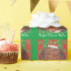 Um gato feliz e tortuoso (parecido com um pudim de natal!) senta-se sobre uma almofada verde contra um fundo com formato de folha vermelha e verde, e 'Desejos Puros de Natal' escritos em branco sobre um fundo verde. Papel de embrulho de Natal bonito com um design personalizável para você personalizar com seu próprio texto, mensagem ou imagens. Imagem criada a partir de um desenho a lápis colorido original.