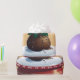Imagem divertida do pudim de Natal debaixo de uma cúpula de vidro.
