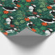 Padrão Puffin colorido e divertido com muitas flores e folhagem verdes. Cor verde e laranja vibrantes.