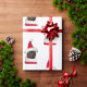Cute Black Pug em Santa Hat Papel de moldagem de Natal com um adorável cachorrinho preto em uma fantasia festiva de Papais noeis vermelhos!