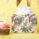 This watercolor-style Christmas wrapping paper features a sweet puggle wearing a Santa hat, surrounded by holly and festive winter greenery. Known for their big soulful eyes, playful charm, and affectionate personality, puggles are a beloved mix of pug and beagle. This cozy holiday design is perfect for dog lovers who appreciate whimsical, hand-painted artwork with a warm Christmas feel.