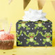Sapos verdes felizes pulando em padrão de bolinhas branca e fundo preto.