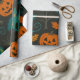 Um design de Halloween festivo, com lanternas brilhantes, casas assombradas, morcegos e folhas de outono. Árvores negras e espirais lacrimogêneas acrescentam um toque místico, criando uma atmosfera assustadora, porém lúdica, perfeita para os projetos sazonais de papel embrulho, decoração e artesanato.