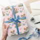 This adorable baby shower wrapping paper features a soft watercolor pattern of playful puppies and fluttering butterflies, creating a gentle and whimsical look perfect for little ones. The pastel colors and hand-painted style.