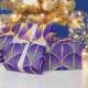 Campo roxo, amarelo; O padrão consiste em bandas alternadas de roxo profundo e amarelo claro, dispostas em uma formação vertical de stripe. As bandas têm largura igual e são executadas paralelamente umas às outras. A impressão geral do padrão é de ousadia.