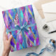 Wrap gifts in style with our new wrapping paper design featuring a dazzling stained-glass mosaic pattern in glittery purple, pink, and blue tones.
