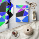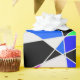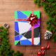 This simple wrapping paper has an abstract triangle pattern that features purple blue, and white colors.