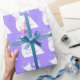 Bonito papel embrulhado em tom de púrpura apresentando um vestido estilizado de casamento e flores em fundo roxo. Um design personalizável para você personalizar com seu próprio texto, imagens e ideias.