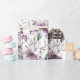 Lindo papel de embrulho com flores de água em tom de roxo que seria bom para aniversários, chá de noiva e casamentos.