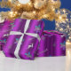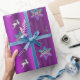 Este molho púrpura de Natal apresenta um padrão de salto de renas e estrelas prateadas, bolhas prateadas penduradas, um floco de neve prateado cintilante, grandes decorações em flocos de neve coloridas com arco-íris e as palavras "Feliz Natal" em brilhante brilho prateado (impresso apenas) na tradicional tipografia inglesa. Este belo papel de embrulho de Natal vai adicionar um toque de estilo e elegância ao seu embrulho de presente para os feriados.