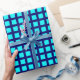 Papel De Presente Quadrados 02 - Ciano em Marinho Profundo