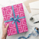 Papel De Presente Quadrados Geométricos Modernos, Fúchsia e Rosas cl