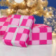 Quadrados controlados, cor-de-rosa-quente, padrão geométrico geométrico de retro-presente, materiais de papel de enrolar para ela. Legal padrão quadrado geométrico verificado por retrô. Rosa claro de azulejo e verificador moderno rosa-quente.