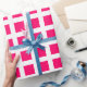 Papel De Presente Quadrados - Vermelho Neon Branco