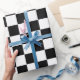 Papel De Presente Quadro de Verificação Branco e Preto Elegante