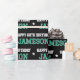 Faça seu presente de aniversário se destacar com um papel de embrulho personalizado para na moda! Este padrão tipográfico ousado mostra o nome do destinatário e a saudação de aniversário em uma letra clássica no estilo de bloco, juntamente com os motivos estelares. A mensagem "Feliz 60º Aniversário" também pode ser personalizada ou alterada para ajustado idade ou celebração diferente. Um estilo de vintagem retrô adequado para todas as idades, desde crianças e adolescentes até família e amigos. Perfeito para uma celebração especial como o seu 16º, 18º, 21rua, 40º ou 50º aniversário! Este design sem problemas está disponível com um acabamento mate ou brilhante. Cor de enrolamento do presente: verde-azul, preto e branco.