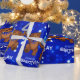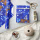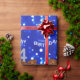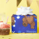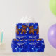 Ursos bonitos e marrons segurando uma alegria número 4 dançando em uma fila através deste divertido papel de embrulho de presente de 4 anos com um fundo azul festivo.
