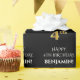 Este design de papel embrulhado, tema de aniversário elegante e luxuoso, apresenta a mensagem "FELIZ 4º ANIVERSÁRIO", um nome editável, e o número de aniversário "4º" com um padrão de aparência inspirado em falsa/imitação de ouro. O fundo é preto colorido. Um papel de embrulho como este pode ser usado na preparação de presentes/presentes para comemorar o 4º aniversário de alguém. [~Z0000454]