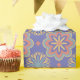 Adicione um pop de talento retrorreflector aos seus presentes com este papel envolvente vibrante que apresenta padrões florais estilizados inspirados em mandala em rosa, amarelo e azul sobre um fundo roxo ousado. Uma escolha perfeita para aniversários, comemorações engraçadas, ou festas temáticas dos anos 70.