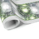 Os ornamentos verdes e brancos festivos colocados sobre um fundo prateado fazem deste papel a escolha perfeita e elegante para os presentes de férias.