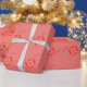 Folha de presente de Natal, design de arte moderna e na moda em verduras, vermelhos e corais. O texto pode ser personalizado com seu próprio cartões de natal. O texto também é removível.