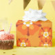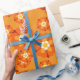 Um presente cor de laranja vibrante com um padrão floral retrô com sotaques brancos, perfeito para adicionar um toque de na moda a feriado, aniversário ou presentes especiais.