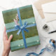 O terno branco com cabeça preta está deslizando sobre pântano, água e céu ao fundo. A imagem é formada por bandas em papel.