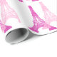 Papel de embalagem magenta e rosa brilhante e divertido para amantes de Paris. A torre Eiffel em tons coloridos é engraçada e divertida por muitas ocasiões.