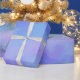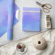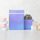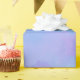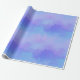Apresenta um design de lavagem de cor azul, roxo e rosa.