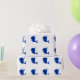 Baleia de desenho animado em azul escuro, com água jorrando de cima da cabeça.