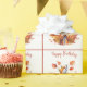 Comemore seu aniversário com um toque de vibrações do outono usando nossos suprimentos de design de aquarela, com uma fox adorável. Descubra uma série de decorações, louças e acessórios para tornar sua celebração inesquecível. Um belo papel de embrulho de aniversário com uma raposa de aquarela. Para pessoas de outono/nascer de outono. Personalize este produto adicionando as informações da sua parte.