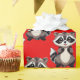 Cute little cartoon Raccoon Pattern Design on a Red background