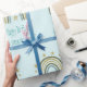 Papel De Presente Rainbow Blue Dourado Parabéns Especial