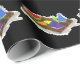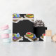 Dispõe-se de um conjunto vibrante de fatias de melancia do arco-íris num conselho de madeira que apresenta formas triangulares e redondas coloridas. As cores contrastantes em relação ao fundo neutro criam uma exibição animada e atraente.