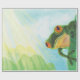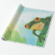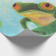 Sapo verde se divertindo na lagoa, coberto com almofadas de lírios e captando raios de sol. Ilustração de Livro. Para amantes de animais e sapos.