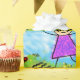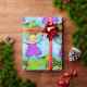 Essa garota de vestido roxo está se divertindo dançando e sorrindo, o que você pode adicionar a qualquer presente, já que é um design excelente para embrulhar papel. Isto pode ser excelente para o aniversário, aniversário ou presente de Natal de qualquer garota! Aproveite!
