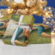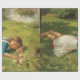 Este design apresenta uma pintura do artista alemão Carl von Bergen (1853-1933). Mostra uma jovem doce deitada na grama do lado de fora de sua casa num dia ensolarado. Ela está em um belo jardim verde enquanto brinca com alguns pequenos pintinhos bonitinhos (bebês). A galinha-mãe está olhando para seus pintinhos. A garota também está segurando um sanduíche para comer. A garota está vestindo um vestido tradicional e tem o cabelo em rabos de porco. O trabalho artístico original foi pintado em 1912.