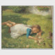 Papel De Presente Rapariga Brincando com Pintinhos (Galinha e Galinh