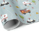 Este design de papel de embrulho de aniversário de criança bonito apresenta um padrão de transporte de cartoon azul, com caminhões de bombeiros, ambulâncias e carros da polícia. O complemento de aniversário perfeito para o transporte de emergência para qualquer aspirante a policial, bombeiro ou paramédico.