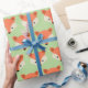 Papel De Presente Raposa Cachorro face Padrão em Verde
