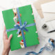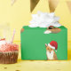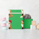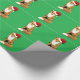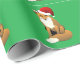 Este belo papel de embrulho apresenta uma raposa sentada quase como um cão e vestindo um chapéu de Papai Noel na cabeça. Esta imagem divertida está sobre um fundo verde e é uma ideia única para o presente de Natal.