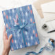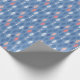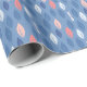 Raposas bonitas perseguindo folhas - papel de embrulho. Uma gama de matizes azuis misturados com tons de coral sobre um fundo azul tranquilo.