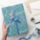 Enrole seu presente nesta divertida impressão de trilhas brancas de animais em um fundo de turquesa