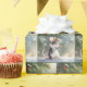 Um camundongo encantador sobre as pernas traseiras segurando um mistério numa paisagem nevada