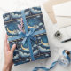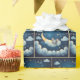 Rato cinza bonito dormindo numa nuvem com lua crescente no céu azul escuro.